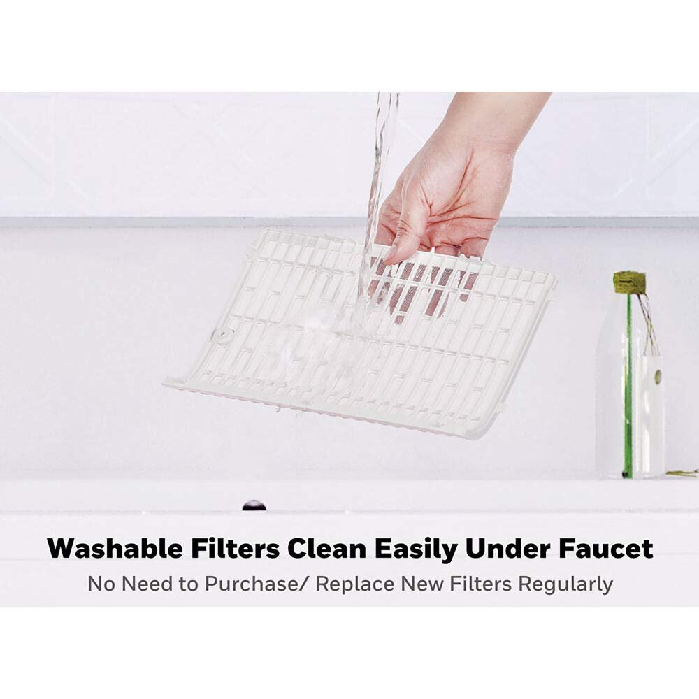 - Waschbarer Filter: Der Filter schützt vor Staub und Haaren und lässt sich leicht unter einem Wasserhahn reinigen, um die Lebensdauer und Leistung des Geräts zu verlängern.