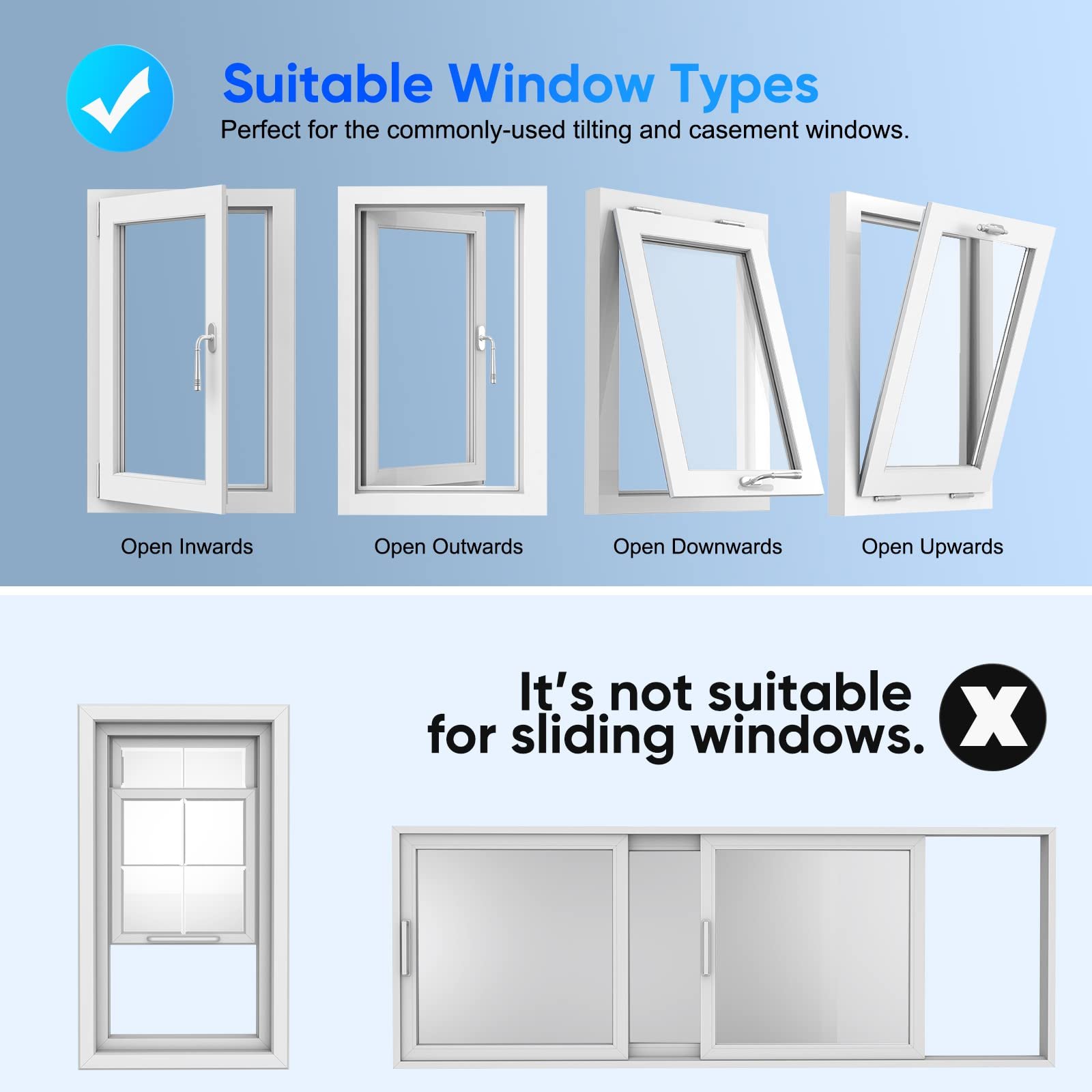 - ✅【Breites Anwendungsgebiet.】Unsere Fensterdichtung wurde für mobile Klimaanlagen und Ablufttrockner entwickelt, um die heiße Luft abzuführen und das Gerät auch bei geöffnetem Fenster effizienter arbeiten zu lassen. Geeignet für die am häufigsten verwendeten Kipp- und Flügelfenster mit einem maximalen Umfang von 400 cm, jedoch nicht für Schiebefenster.