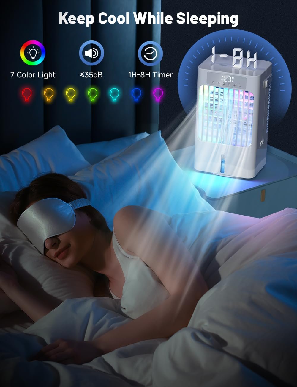 - 8-Stunden-Timer: Programmieren Sie das Gerät so, dass es sich automatisch ein- oder ausschaltet. Dies spart Energie und sorgt dafür, dass Sie immer in eine angenehm kühle Umgebung zurückkehren.