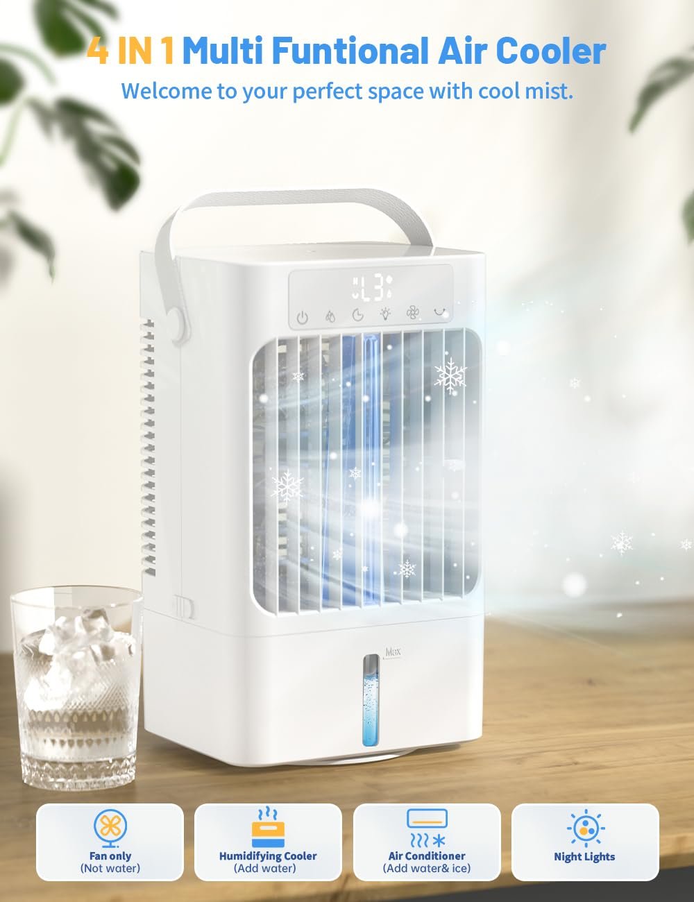 Die WAROUS Klimaanlage ist mehr als nur ein Luftkühler. Sie kombiniert vier Funktionen in einem kompakten Gerät, um Ihre Bedürfnisse zu erfüllen: