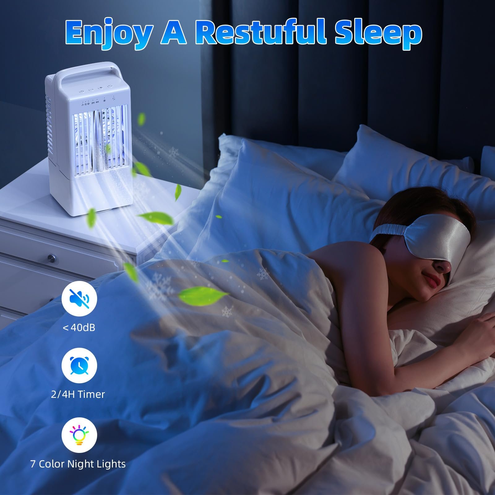- Schlafzimmer: Genießen Sie eine ruhige und kühle Nacht mit dem leisen Betrieb und der stimmungsvollen LED-Beleuchtung.