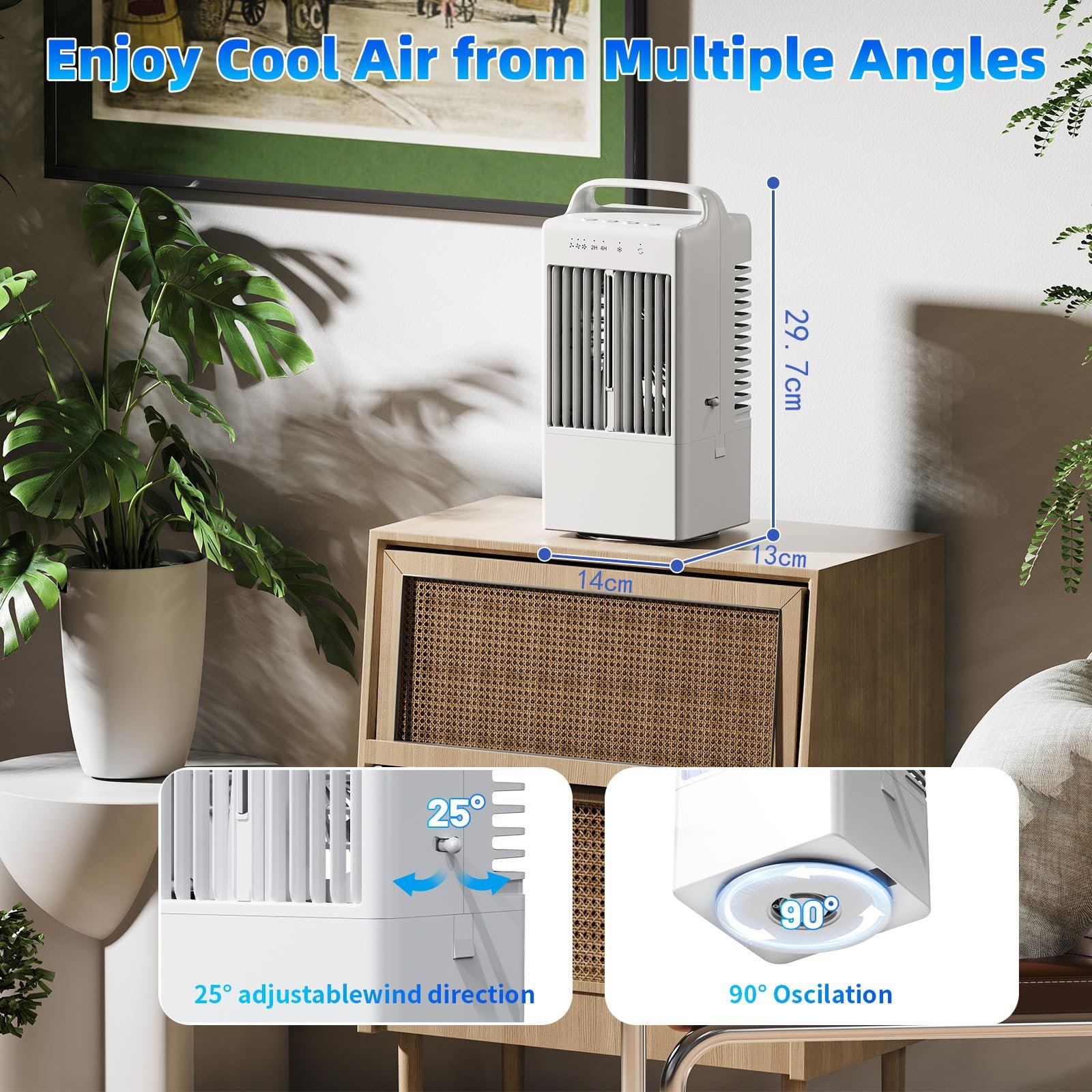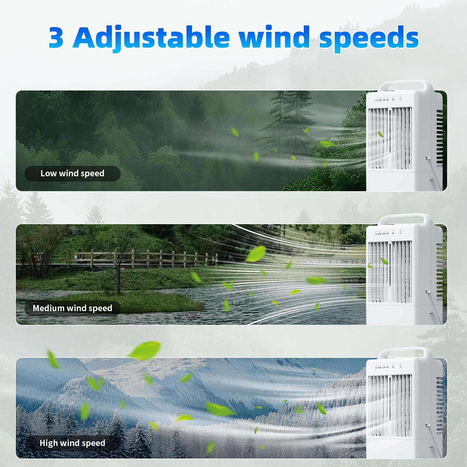 - Kühlleistung: 3 Windgeschwindigkeiten & Sprühmodus